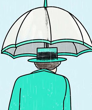 Anne’s design combines the Queen’s interests, such as pigeon racing, hats, and horses, alongside a depiction of a young Queen Elizabeth II in a white dress, one of her most iconic outfits.